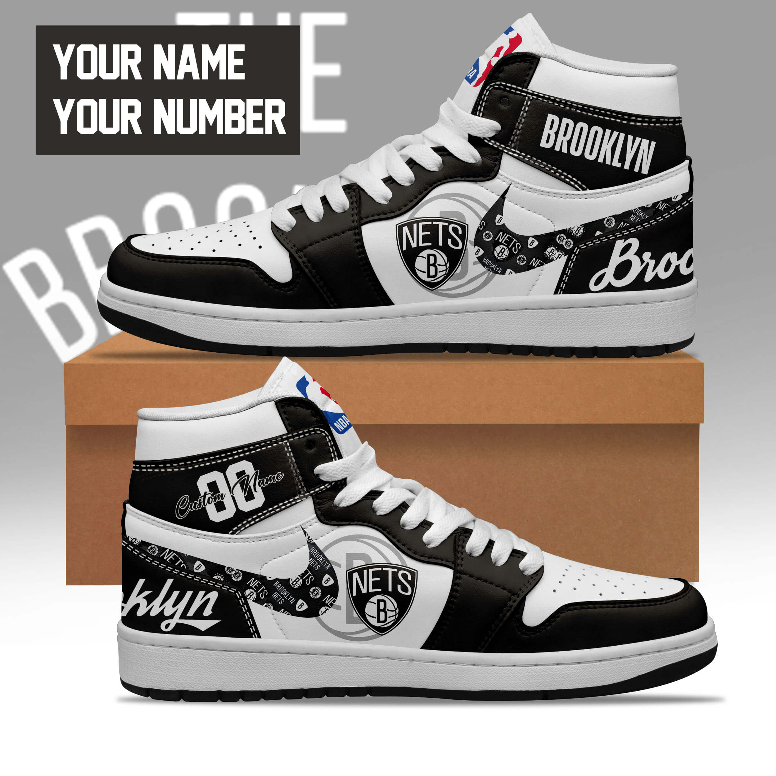 Brooklyn Nets AJ1 High Sneakers Shoes For Men And Women