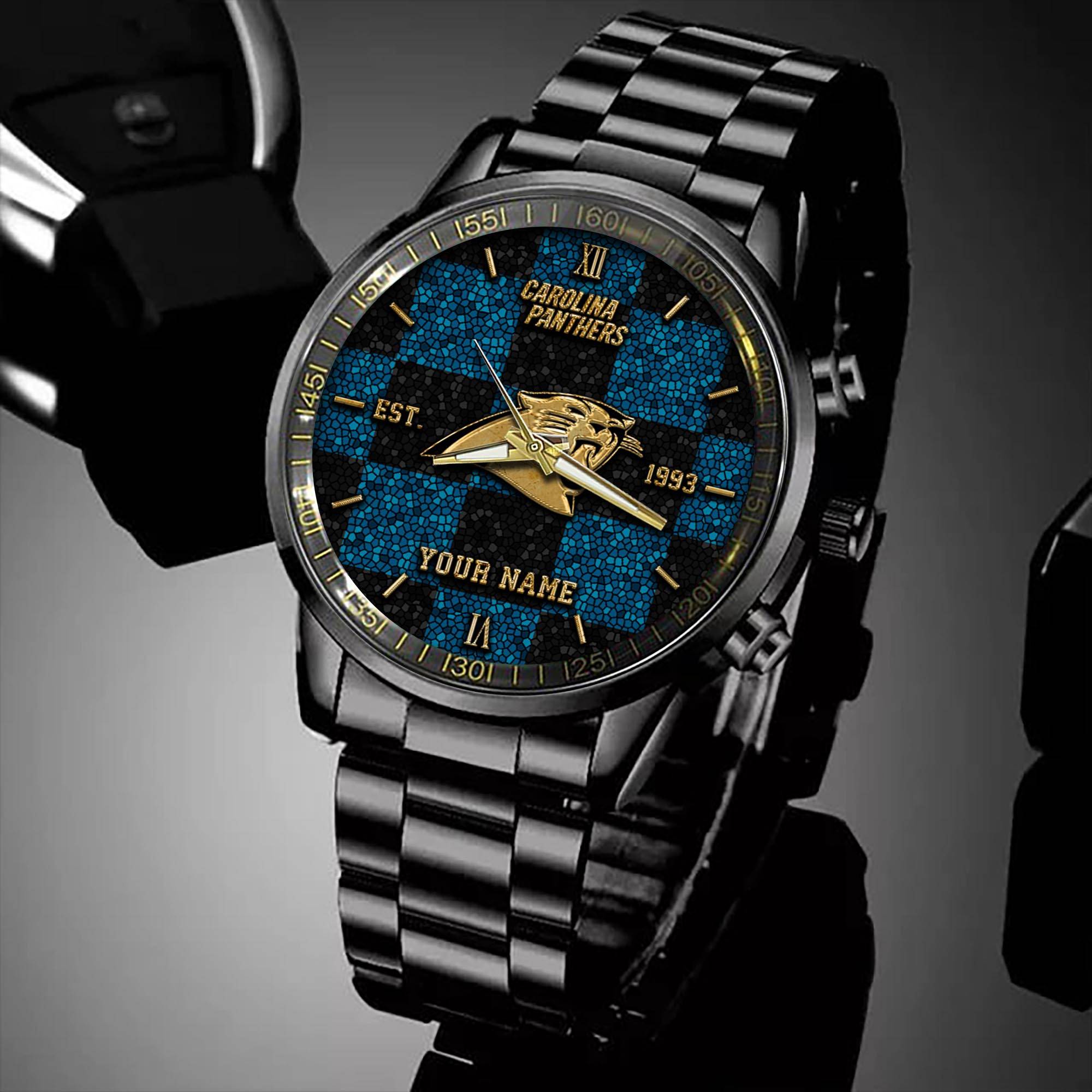 Carolina Panthers NFL Personalized Sport Black Watch Gifts For Fans
