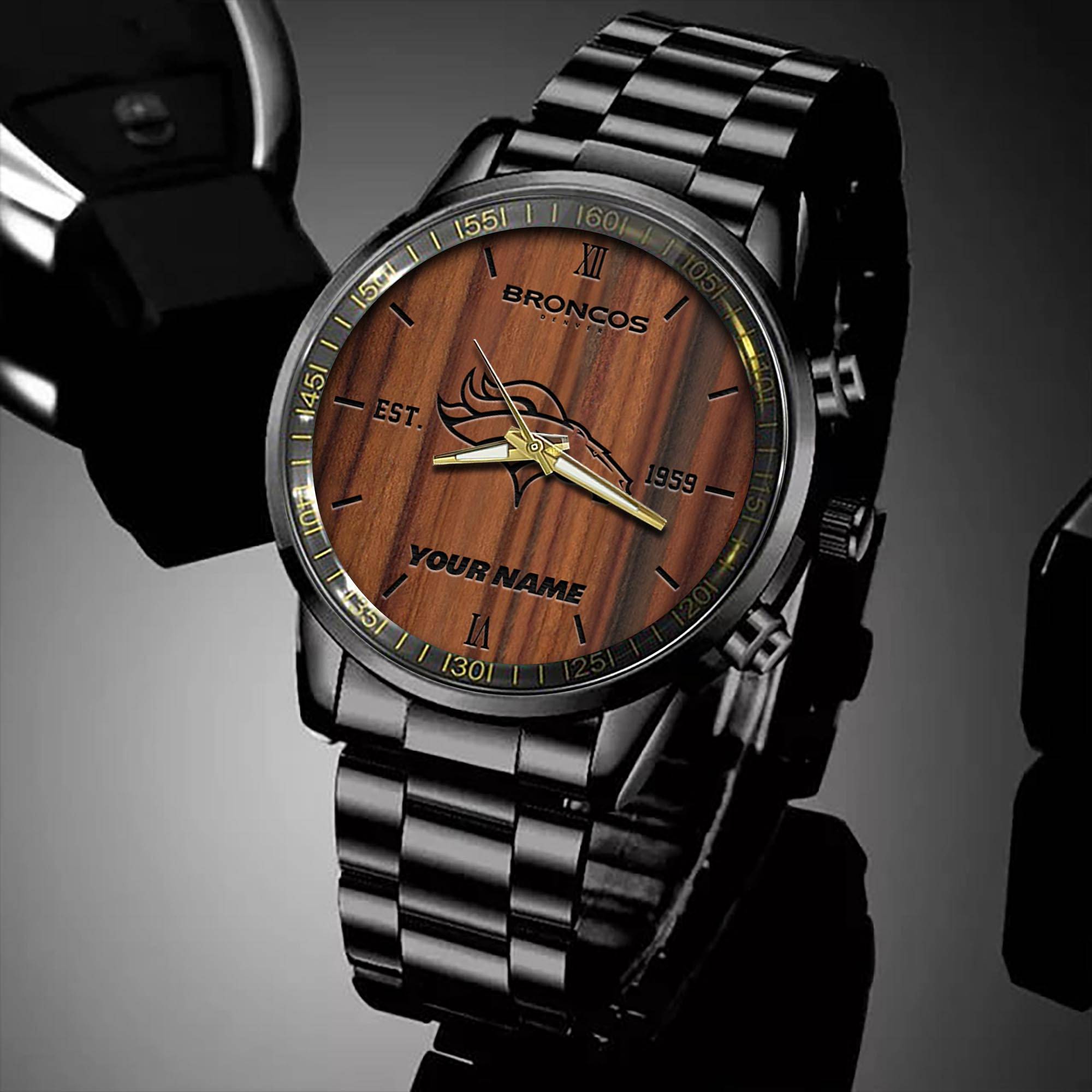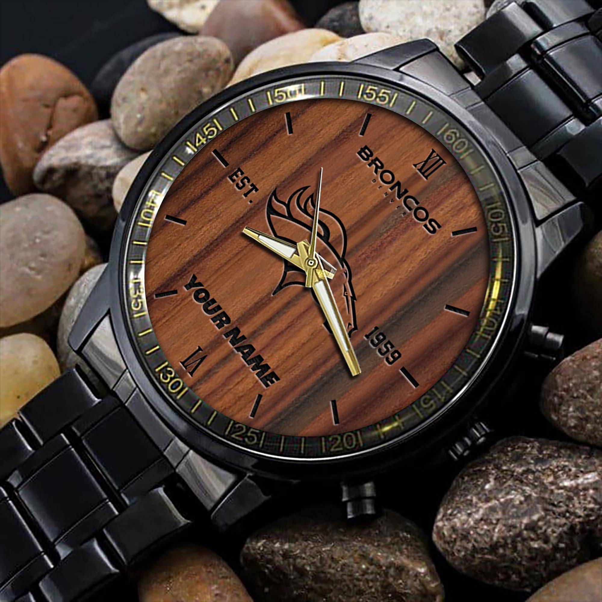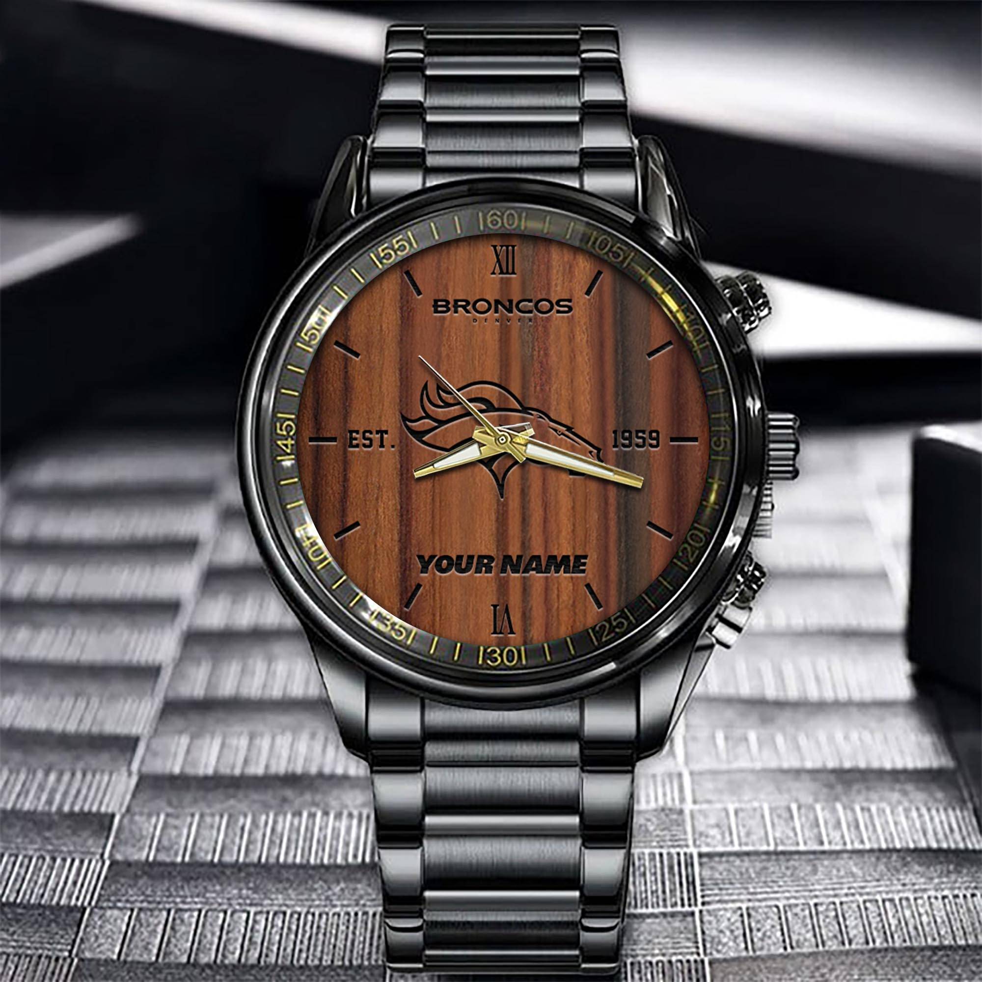 Denver Broncos NFL Personalized Sport Black Watch Gifts For Fans