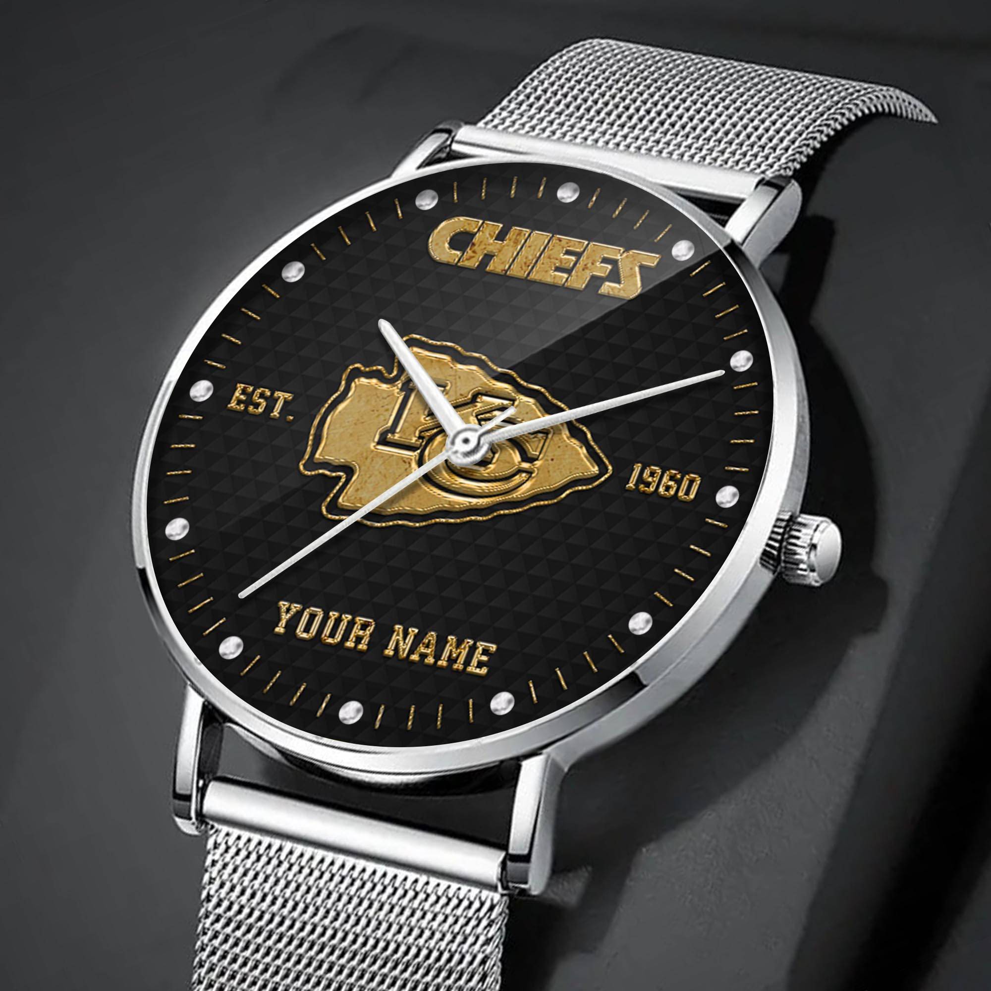 Kansas City Chiefs NFL Black Fashion Watch Custom Your Name