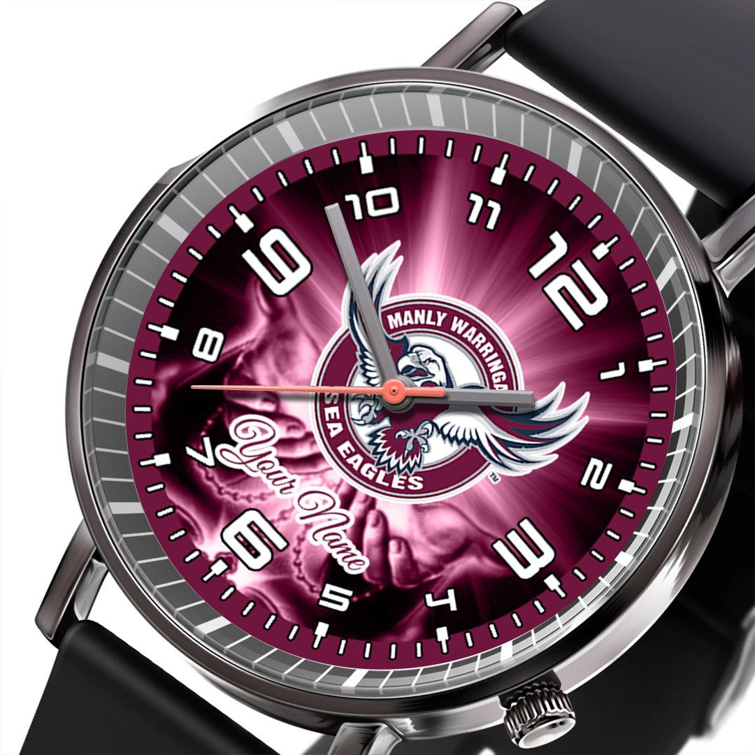 Manly Warringah Sea Eagles NRL 3D Men Leather Hand Watch Personalized Gift For Fans For Father For Fan