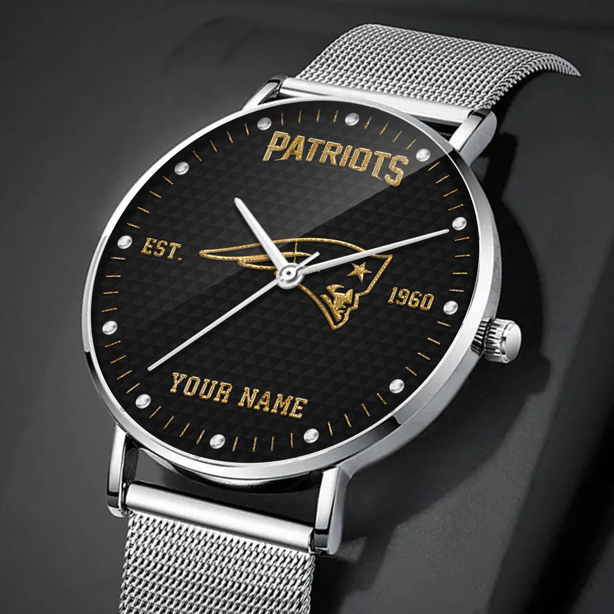 New England Patriots NFL Black Fashion Watch Custom Your Name