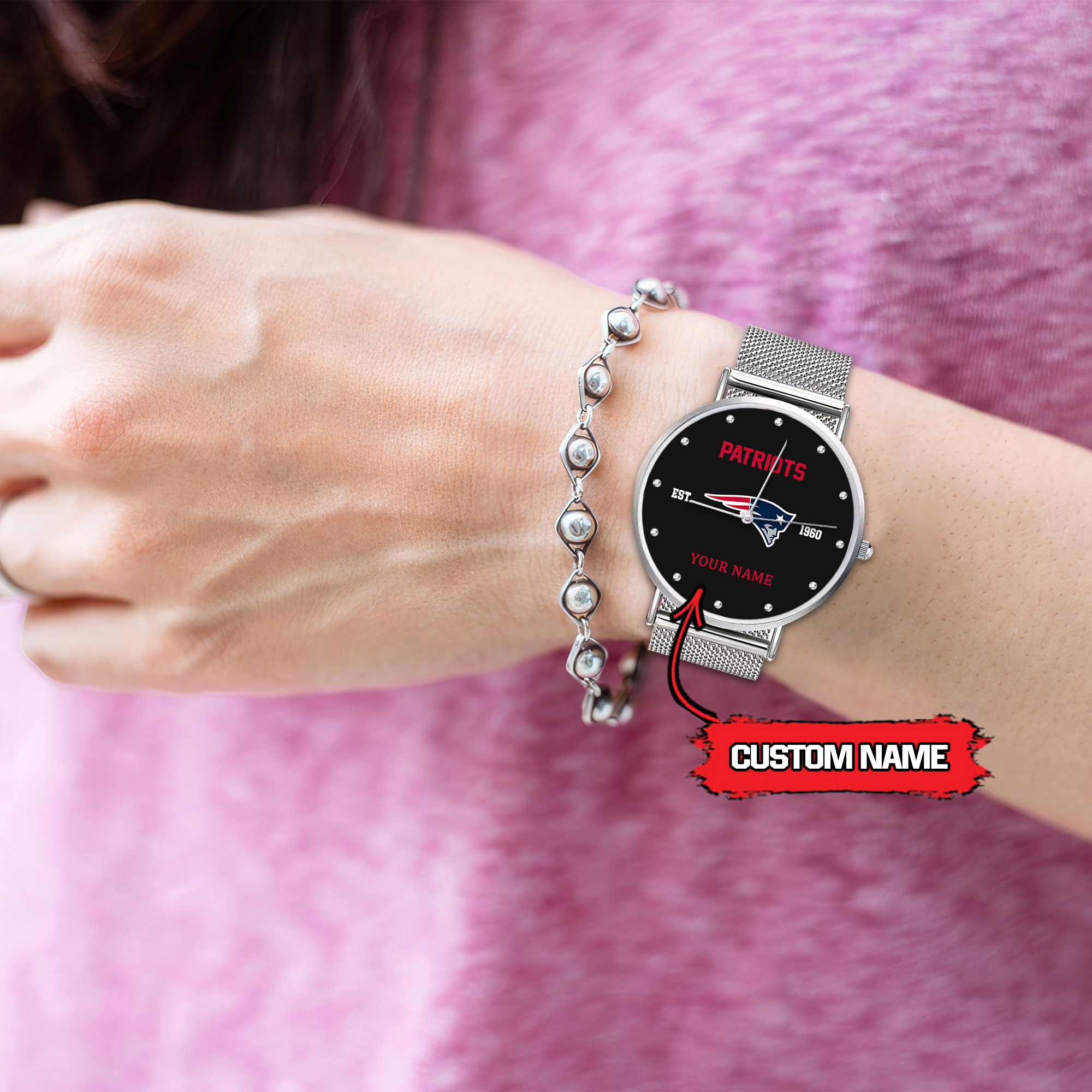 Be the first to review “New England Patriots NFL Personalized Style Sliver Hand Watch For Lady For Fan”