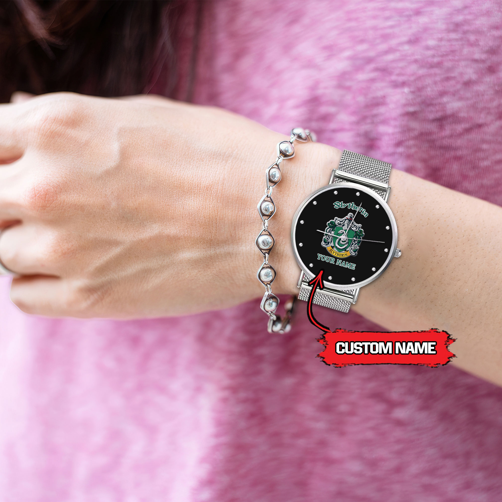 Be the first to review “Slytherin Harry Potter Personalized Silver Fashion Watch For Lady Custom Name For Fan”