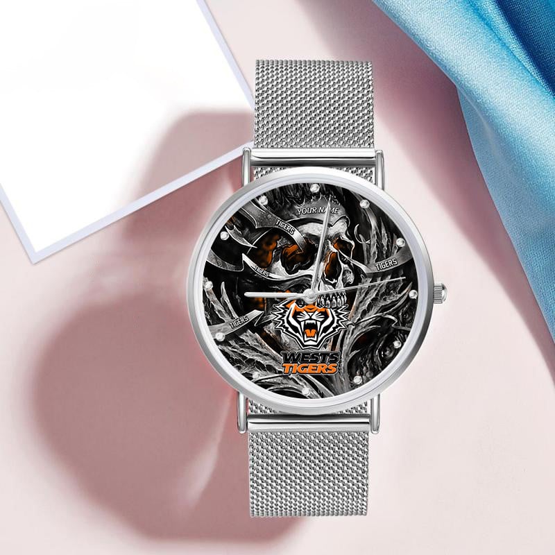 Wests Tigers NRL Skull 3D Women Hand Watch Personalized Gift For Fans